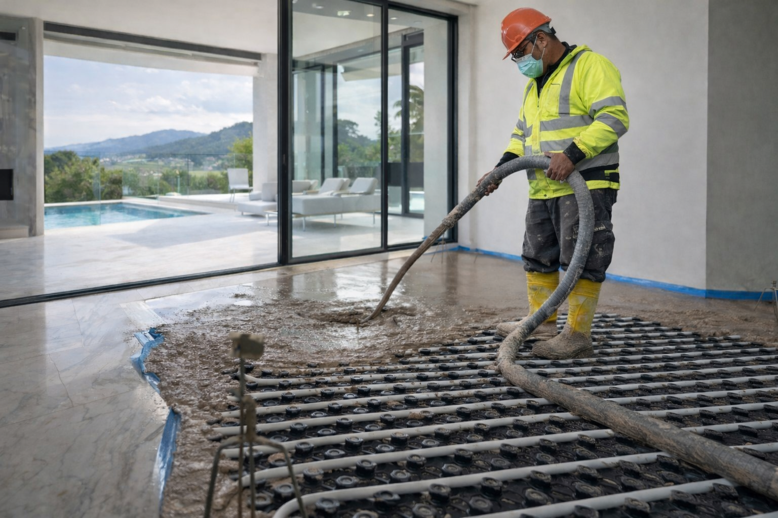 El mortero de anhidrita es una de las mejores soluciones para sistemas de suelo radiante en Barcelona gracias a su alta conductividad térmica. Este material permite una distribución uniforme del calor, mejorando la eficiencia energética y reduciendo el consumo. Además, su aplicación fluida garantiza una superficie completamente nivelada, ideal para cualquier tipo de pavimento.